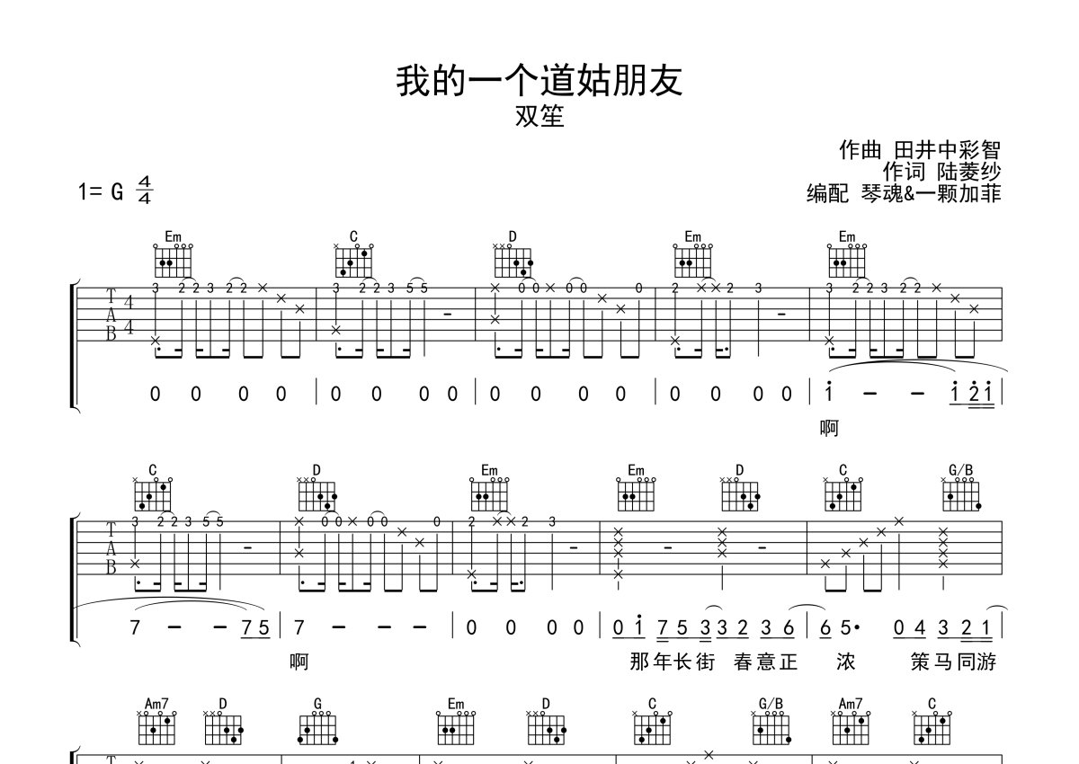 双笙《我的一个道姑朋友》吉他谱 - G调弹唱六线谱