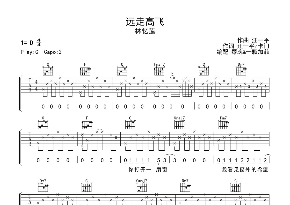 林忆莲《远走高飞》吉他谱 - C调弹唱六线谱