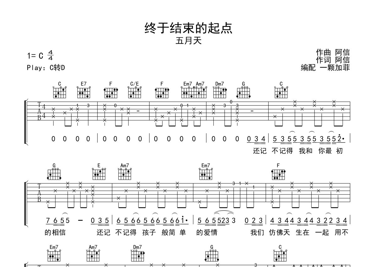 五月天《终于结束的起点》吉他谱 - C调弹唱六线谱