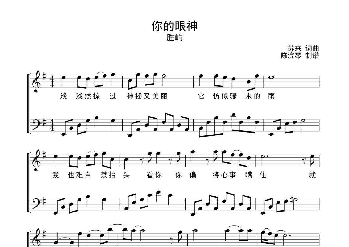 胜屿《你的眼神》钢琴谱 - G调钢琴谱,附歌词