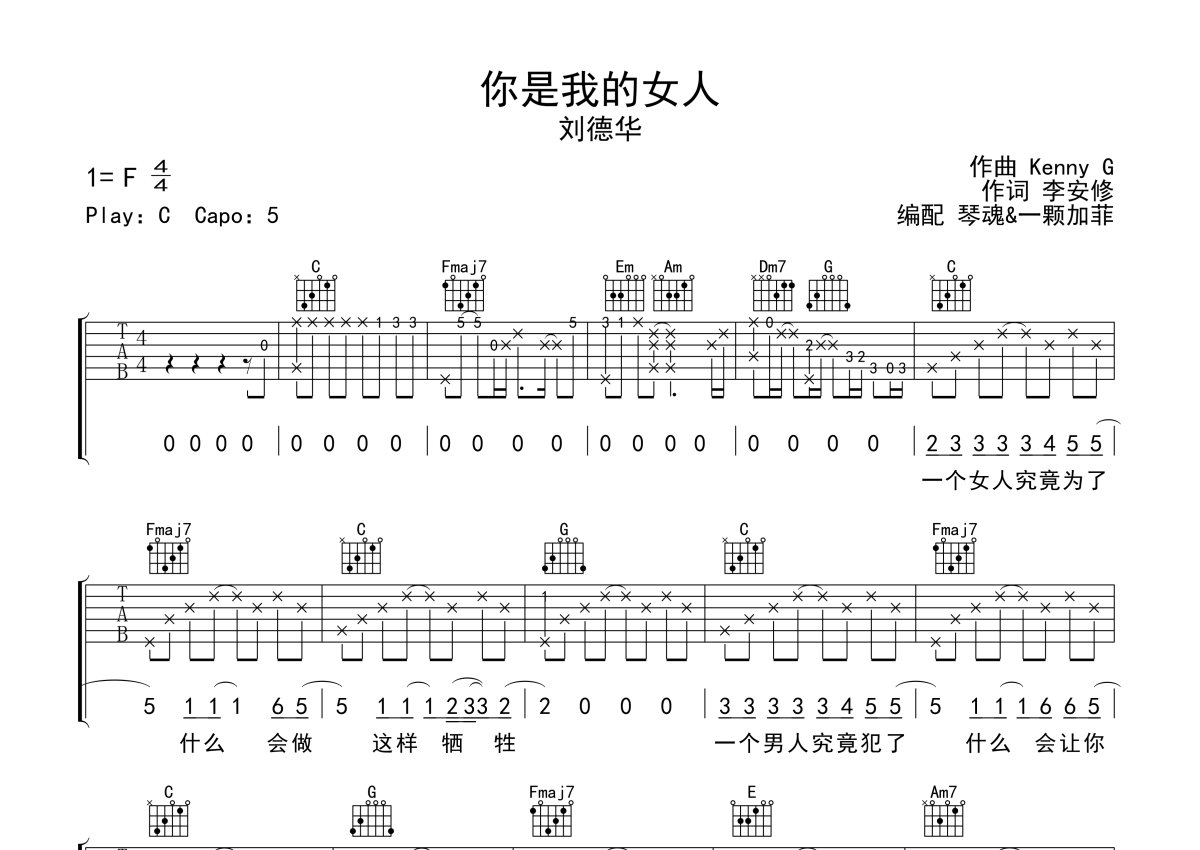 刘德华《你是我的女人》吉他谱 - C调弹唱六线谱