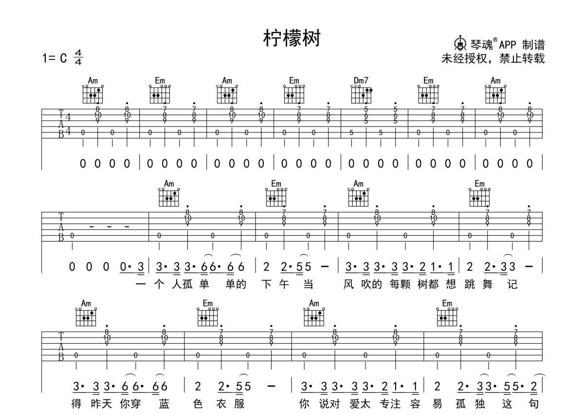 苏慧伦《柠檬树》吉他谱 - C调弹唱六线谱