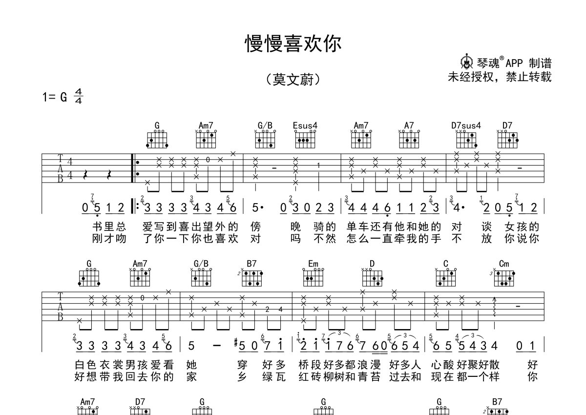 莫文蔚《慢慢喜欢你》吉他谱 - G调弹唱六线谱