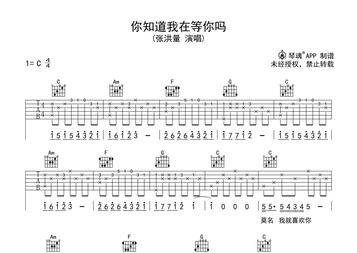 《你知道我在等你吗》是张洪量演唱的一首歌曲,本吉他谱采用的是C调指法编配,这份吉他谱共有两张高清图谱,图谱由 @随心谱 编配上传,图谱使用六线谱编配,包含吉他和弦指法、简谱以及歌词部分,使用这份你知道我在等你吗吉他谱,可以让你更加方便地掌握这首歌曲的弹唱技巧,快来尝试吧。《你知道我在等你吗》是歌手张洪量的专辑《心爱妹妹的眼睛》,也是其中主打歌曲的名称。这首歌在1990年第8届“十大劲歌金曲颁奖典礼”上获得“最受欢迎华(国)语歌曲奖”。《你知道我在等你吗》由台湾著名男歌手张洪量演唱,环球(应是滚石)唱片公司发行。是一首快人炙口、励情励志的一首国语歌曲,曾一时风靡大街小巷。《你知道我在等你吗》是歌手张洪量的专辑名称,也是其中主打歌曲的名称。同时,这首歌曲也被中国台湾著名女歌手李丽芬翻唱过,她富有磁性的演唱为这首歌赢得了不小的知名度。迪克牛仔也演唱过,是迪克牛仔国语歌曲上的又一里程碑。