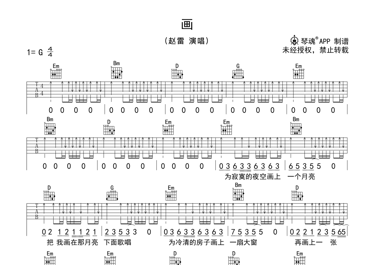 赵雷《画》吉他谱 - G调弹唱六线谱