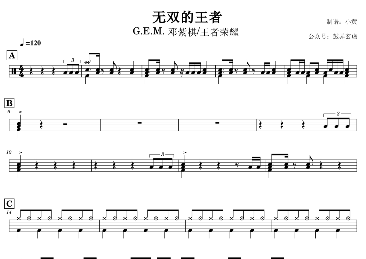 邓紫棋/王者荣耀《无双的王者》鼓谱 - 架子鼓谱