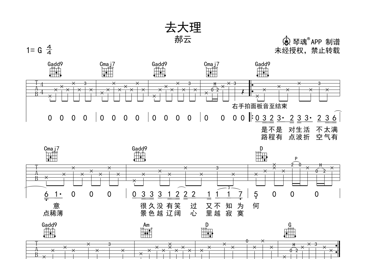 郝云《去大理》吉他谱 - G调弹唱六线谱