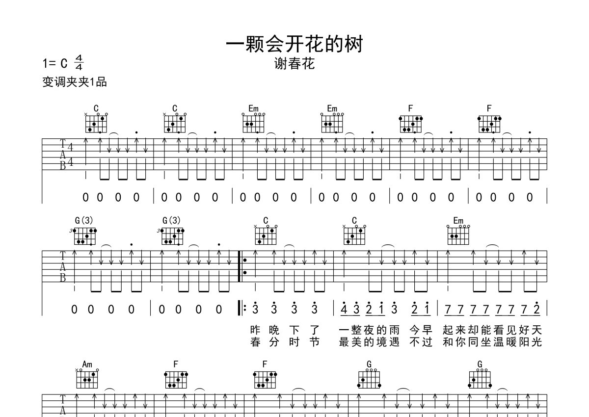 谢春花《一棵会开花的树》吉他谱 - C调弹唱六线谱
