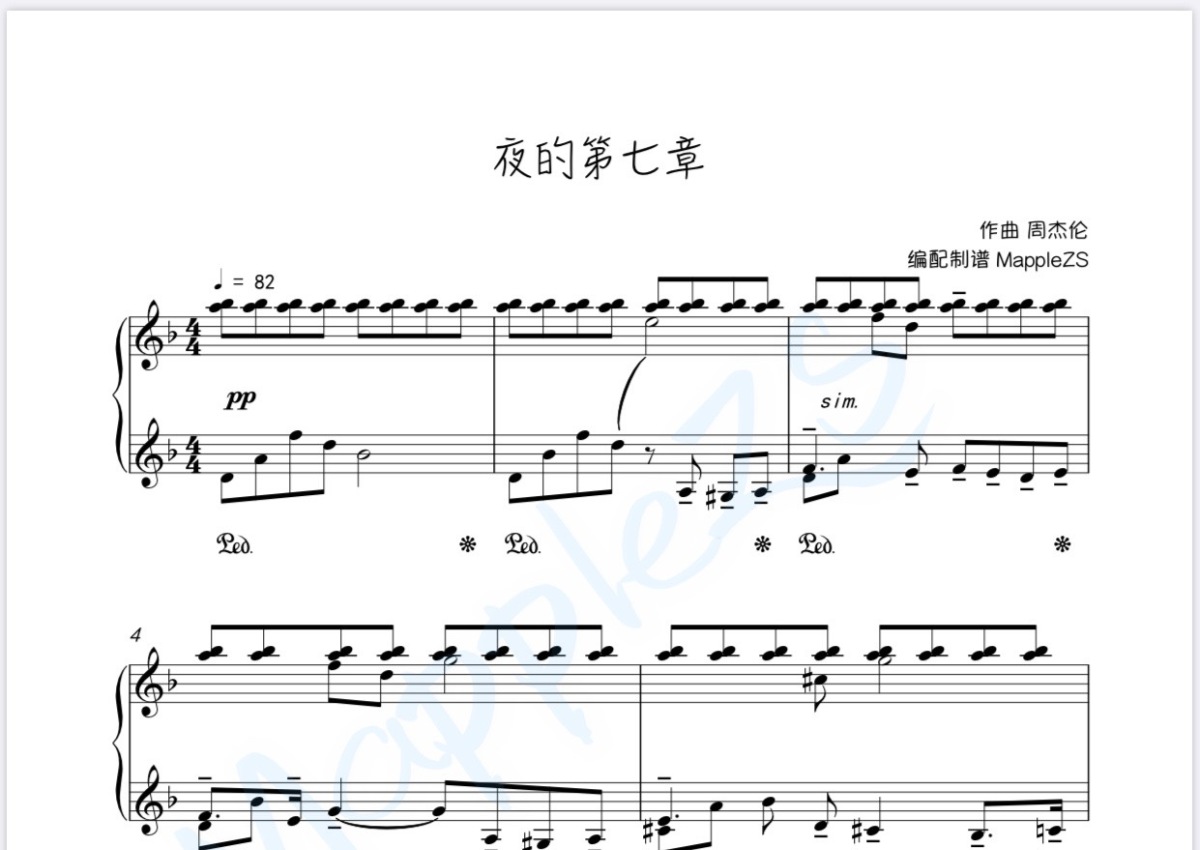 《夜的第七章》是周杰伦演唱的一首歌曲,这份钢琴谱共有八张高清图谱,图谱由 @上善若水 编配上传,使用这份夜的第七章钢琴谱,可以让你更加方便地掌握这首歌曲的演奏技巧,快来尝试吧。
