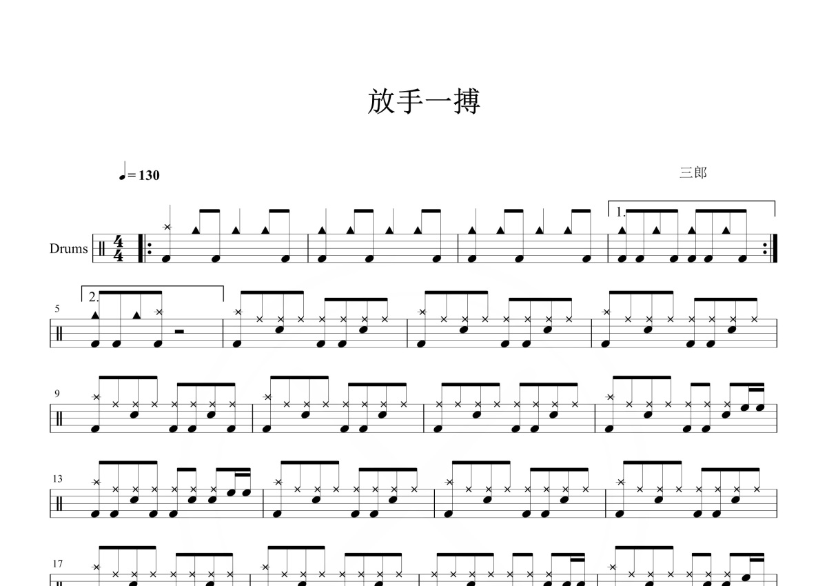 三郎《放手一搏》鼓谱 - 架子鼓谱