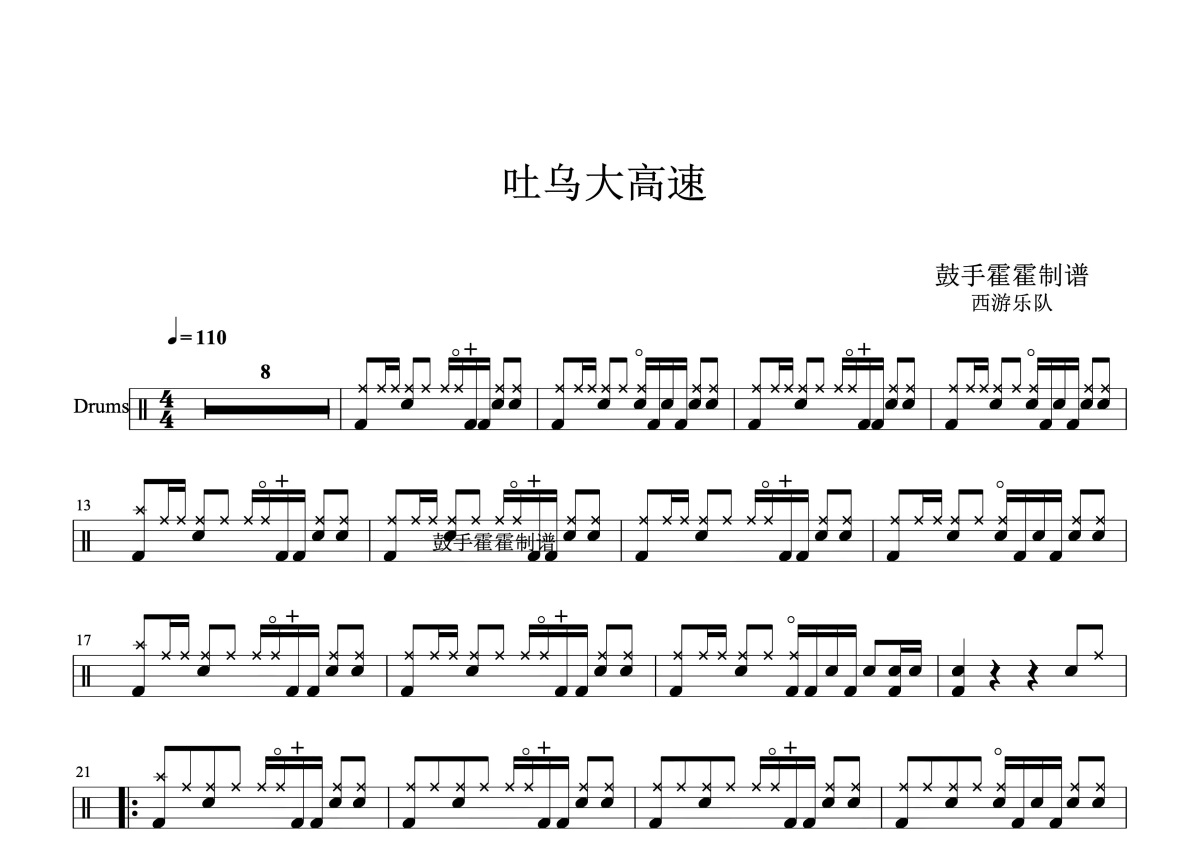 西游乐队《吐乌大高速》鼓谱 - 架子鼓谱