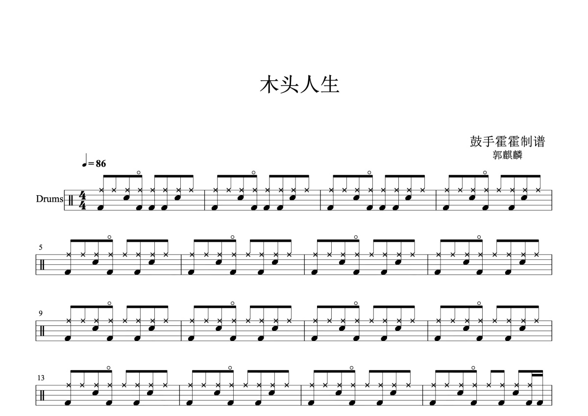 郭麒麟《木头人生》鼓谱 - 架子鼓谱