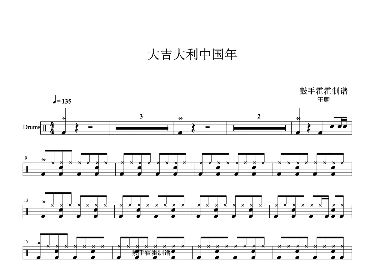 王麟《大吉大利中国年》鼓谱 - 架子鼓谱
