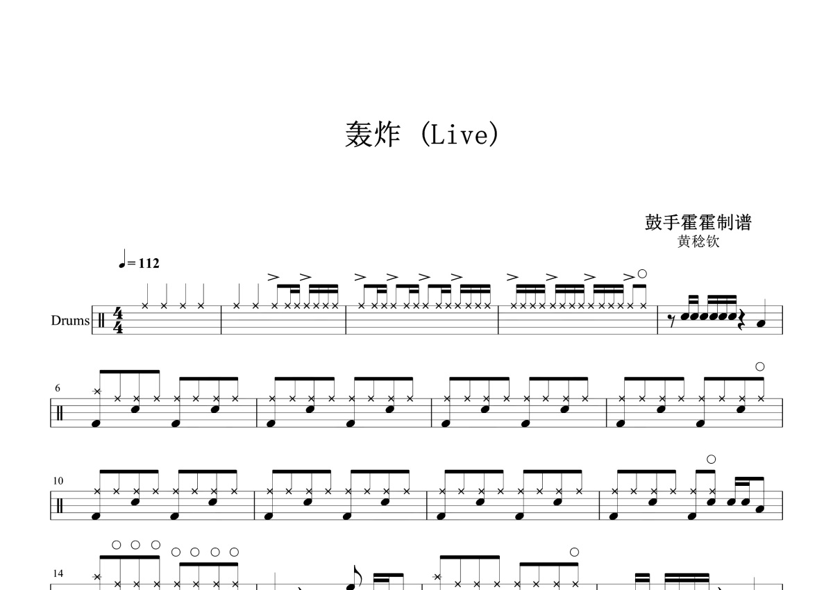 黄稔钦《轰炸》鼓谱 - 架子鼓谱 - Live