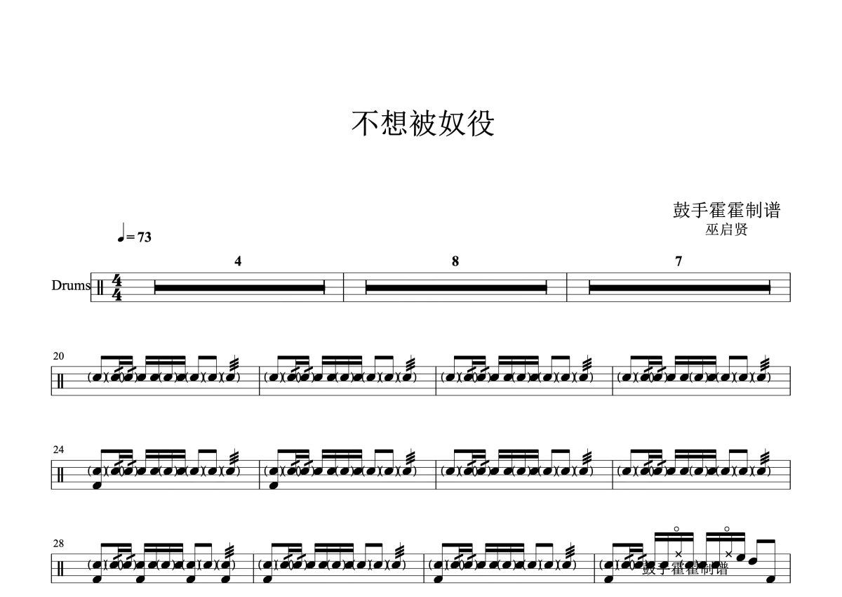 巫启贤《不想被奴役》鼓谱 - 架子鼓谱