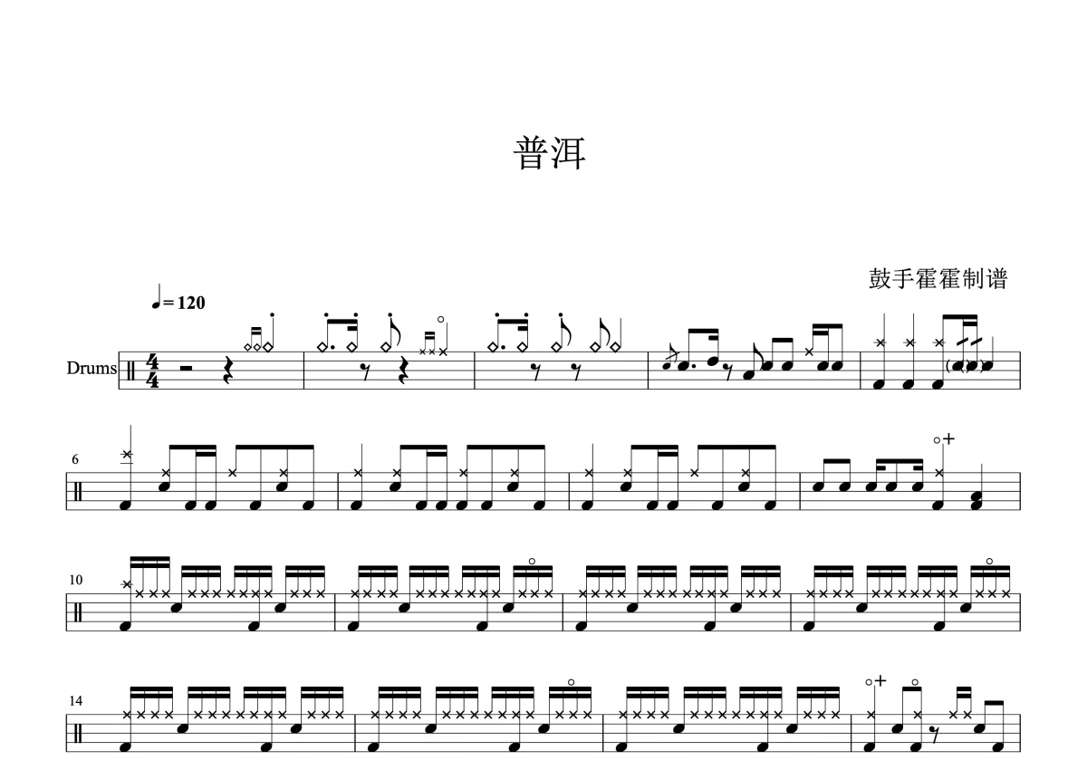 佚名《普洱》鼓谱 - 架子鼓谱