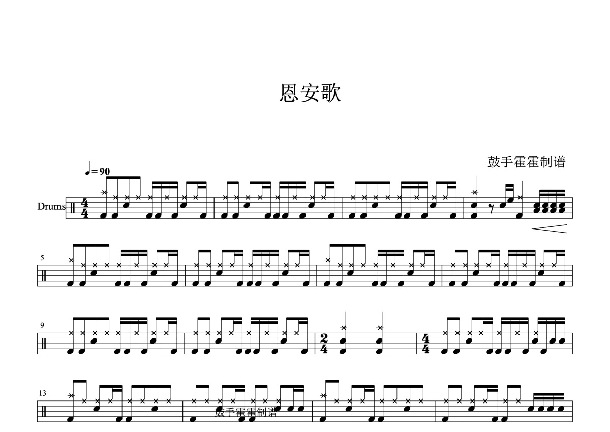 佚名《恩安歌》鼓谱 - 架子鼓谱