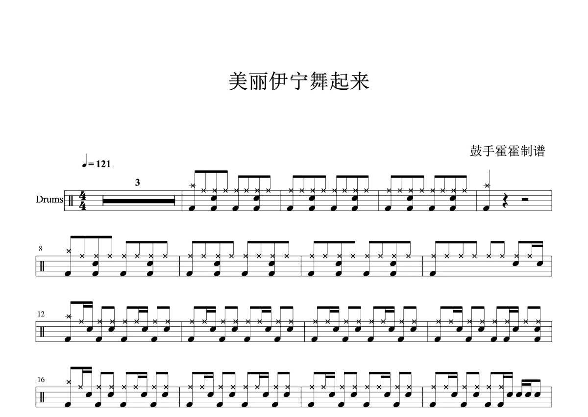 《美丽伊宁舞起来》是新疆舞蹈演唱的一首歌曲,这份鼓谱共有两张高清图谱,图谱由 @打鼓谱 编配上传,图谱使用五线谱编配,使用这份美丽伊宁舞起来架子鼓谱,你将能够轻松地敲打出这首新疆舞蹈的美丽伊宁舞起来,快来尝试吧。