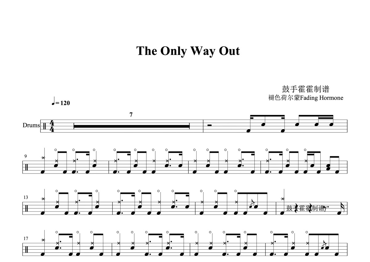 褪色荷尔蒙Fading Hormone《The Only Way Out》鼓谱 - 架子鼓谱