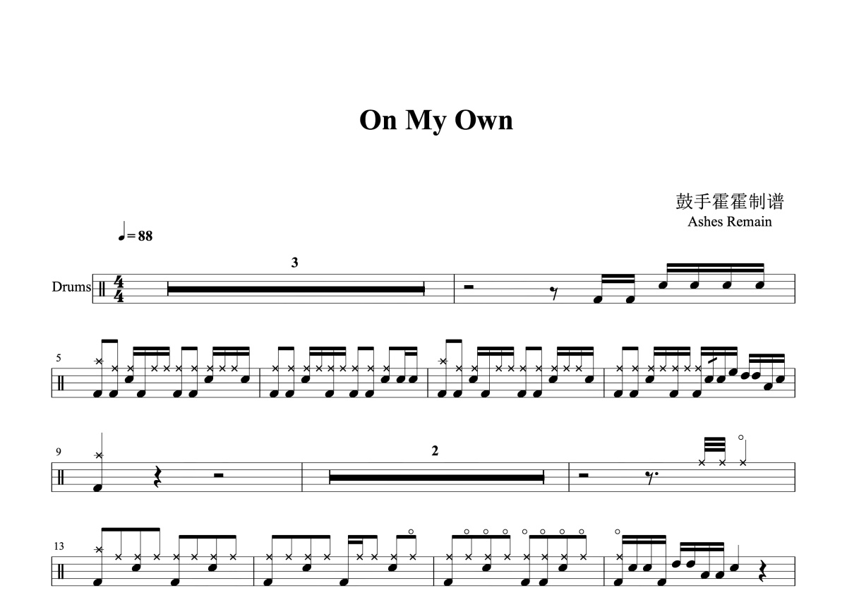 Ashes Remain乐队《On My Own》鼓谱 - 架子鼓谱