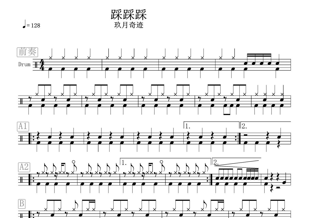 玖月奇迹《踩踩踩》鼓谱 - 架子鼓谱