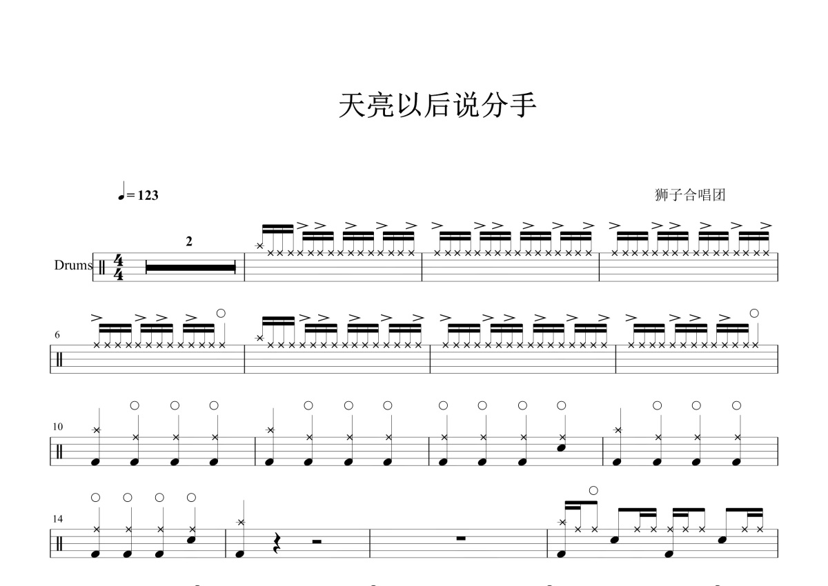 狮子合唱团《天亮以后说分手》鼓谱 - 架子鼓谱