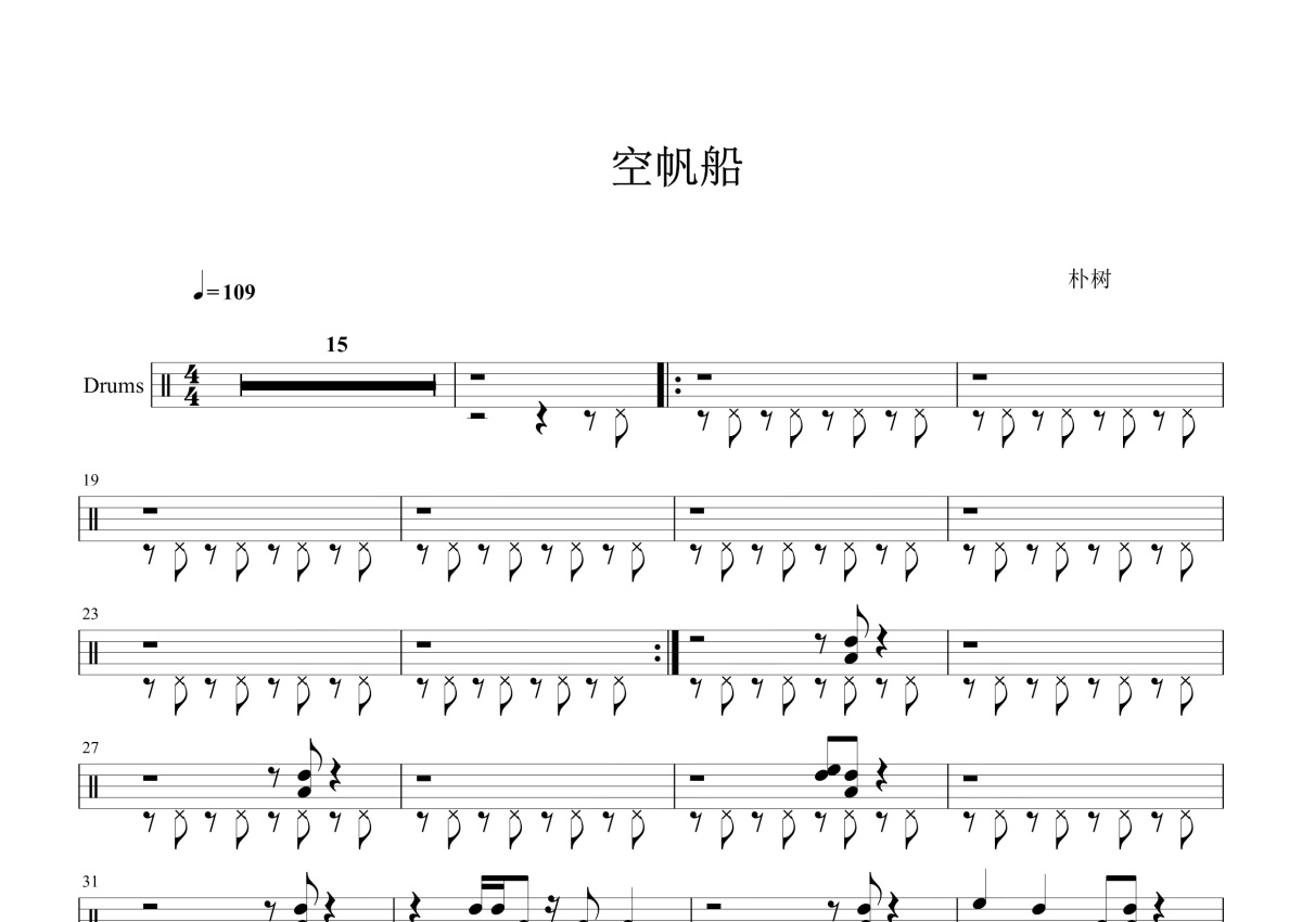 《空帆船》是朴树演唱的一首歌曲,这份鼓谱共有三张高清图谱,图谱由 @打鼓谱 编配上传,图谱使用五线谱编配,使用这份空帆船架子鼓谱,你将能够轻松地敲打出这首朴树的空帆船,快来尝试吧。《空帆船》是由朴树作词作曲并演唱的一首歌曲,该曲收录在朴树2017年发行的专辑《猎户星座》中。