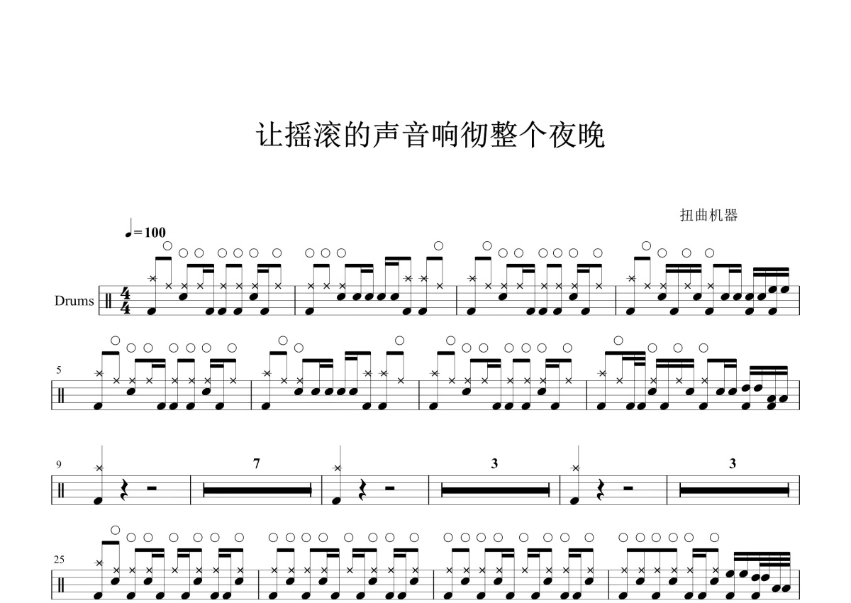 扭曲机器《让摇滚的声音响彻整个夜晚》鼓谱 - 架子鼓谱