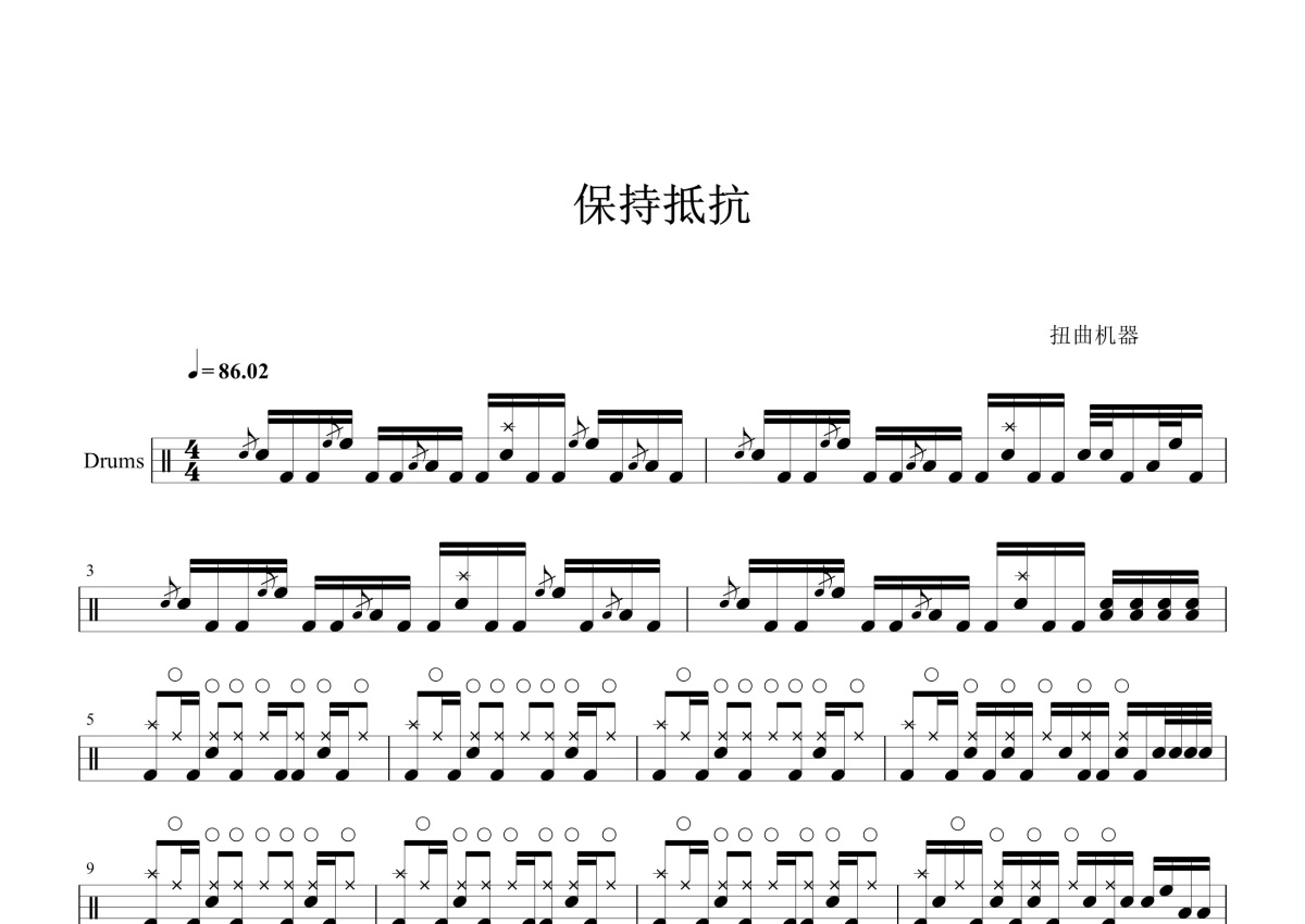 扭曲机器《保持抵抗》鼓谱 - 架子鼓谱