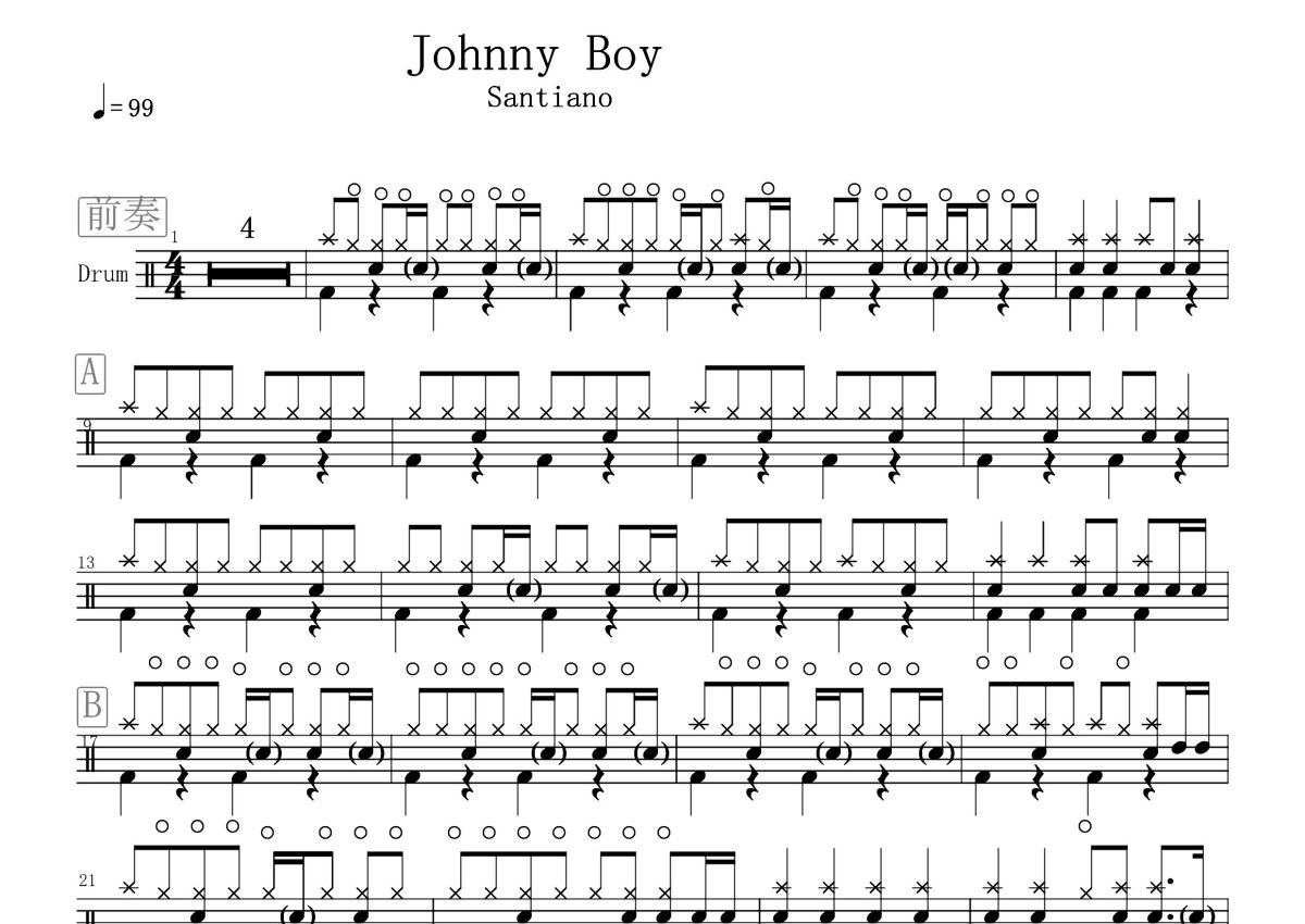 Johnny Boy《Santiano》鼓谱 - 架子鼓谱