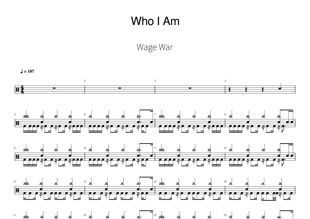 Wage War《Who I Am》鼓谱 - 架子鼓谱