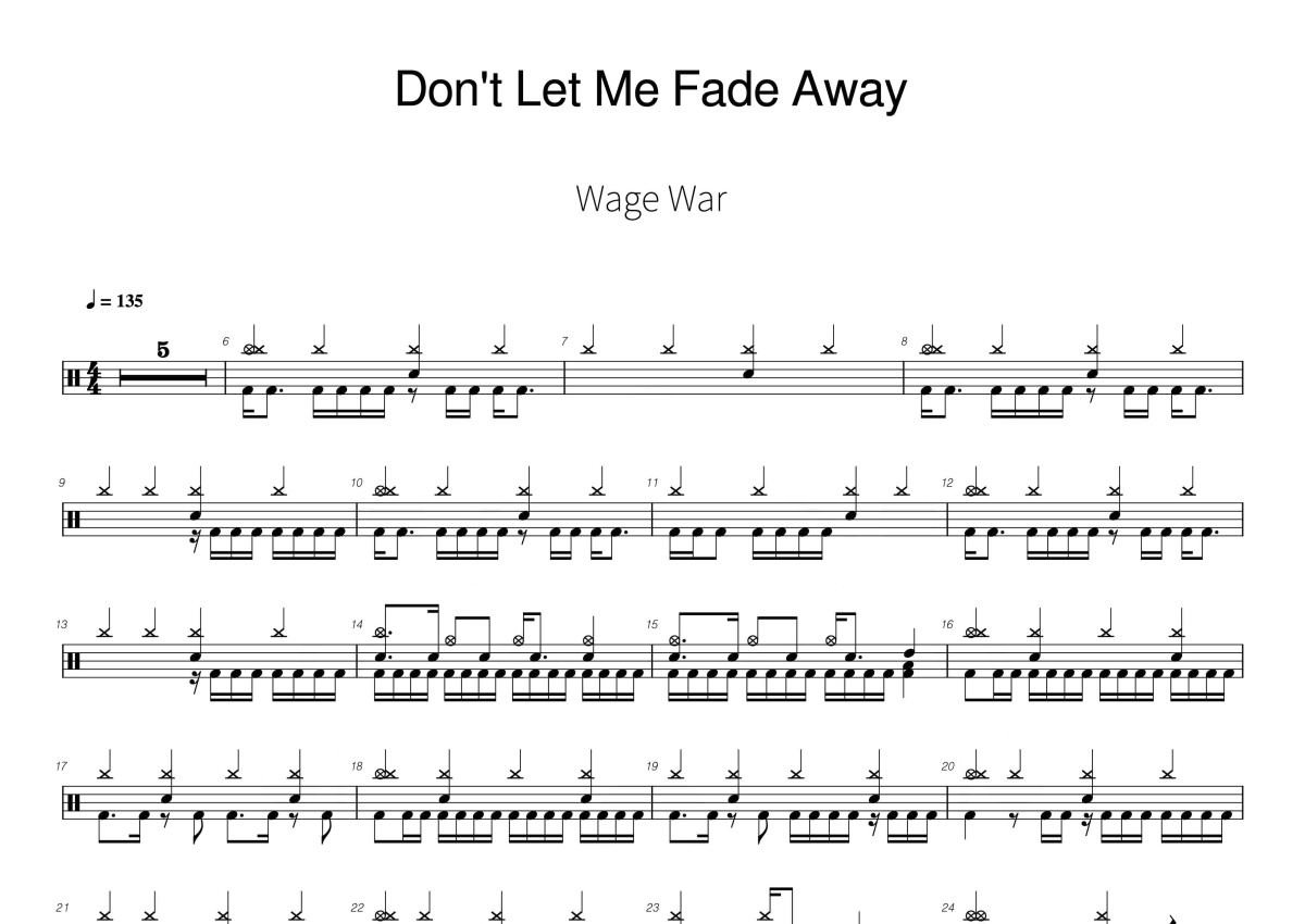 Wage War《Don't Let Me Fade Away》鼓谱 - 架子鼓谱