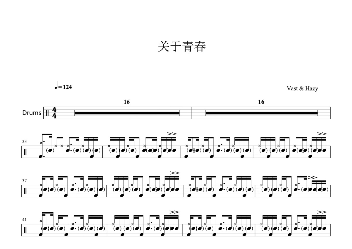 VH (Vast & Hazy)《关于青春》鼓谱 - 架子鼓谱