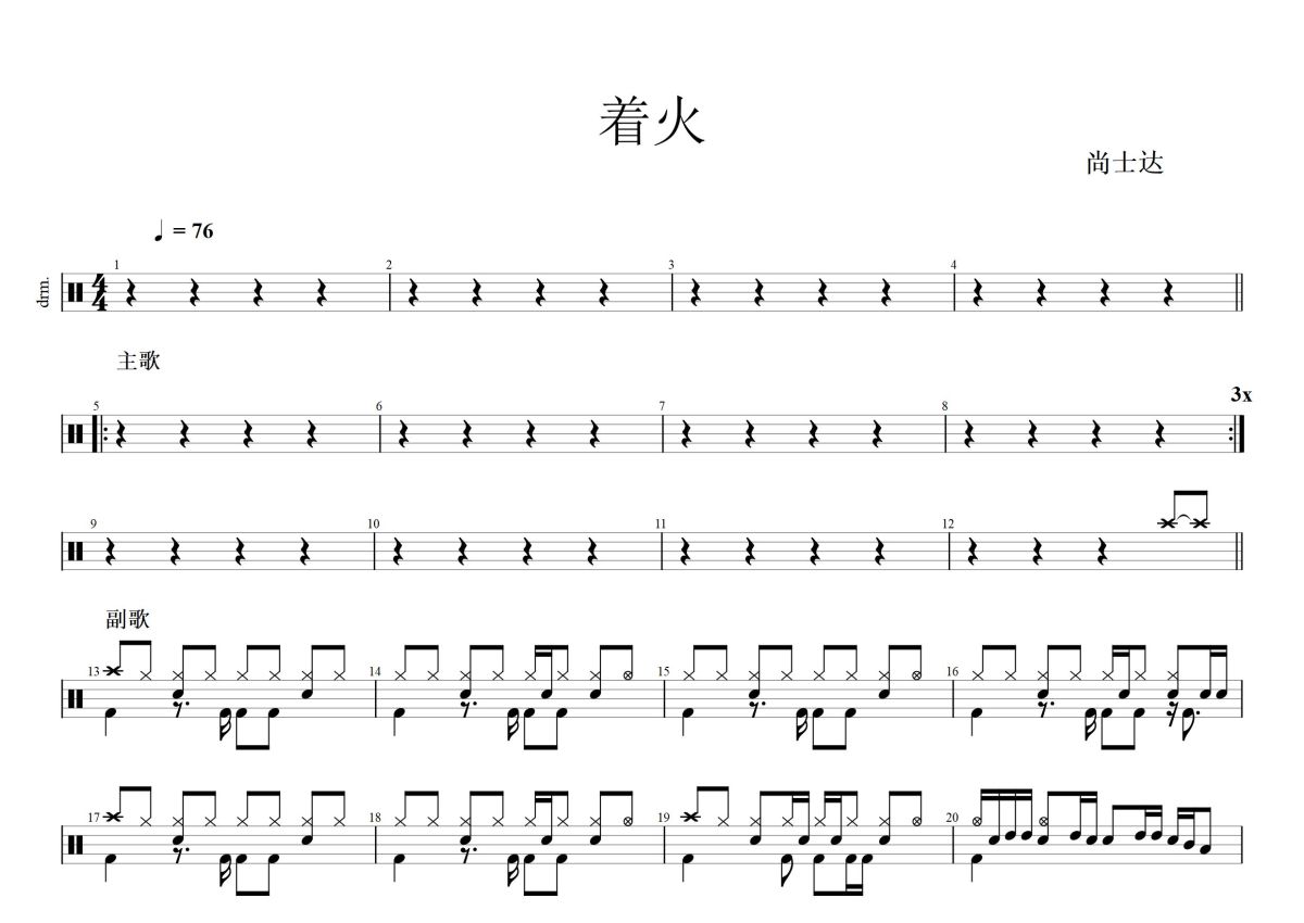 尚士达《着火》鼓谱 - 架子鼓谱