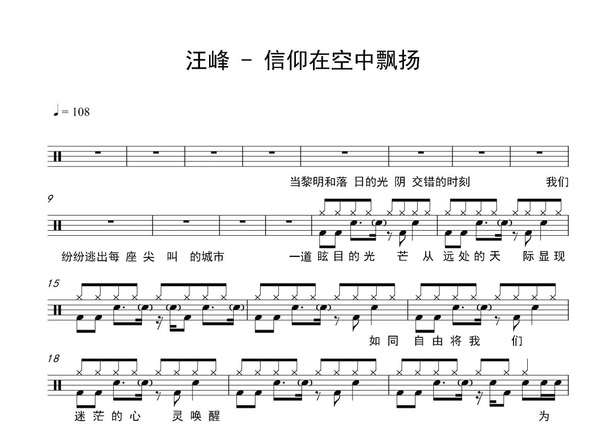 汪峰《信仰在空中飘扬》鼓谱 - 架子鼓谱