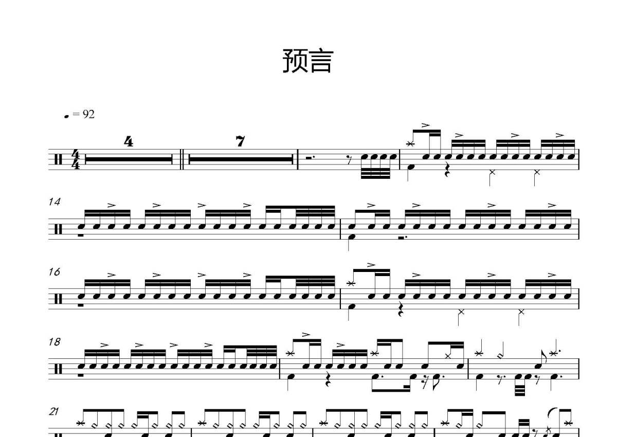 《预言》是打扰一下乐团演唱的一首歌曲,这份鼓谱共有三张高清图谱,图谱由 @打鼓谱 编配上传,图谱使用五线谱编配,使用这份预言架子鼓谱,你将能够轻松地敲打出这首打扰一下乐团的预言,快来尝试吧。《预言》是打扰一下乐团演唱的歌曲。由陈圣仑、米时可填词,陈圣仑谱曲。 打扰一下乐团,成立于2014年8月1日,中国内地音乐组合,由陈圣仑和米时可组成。