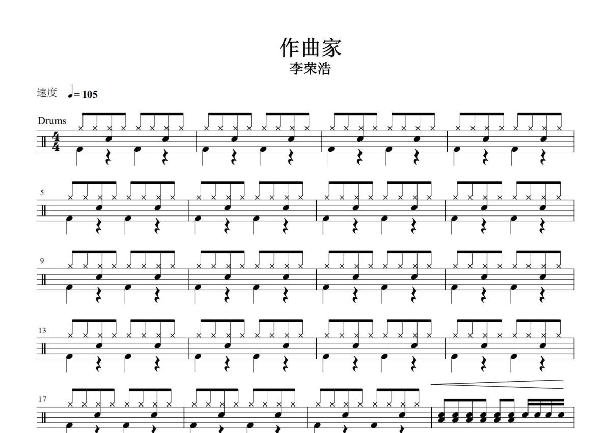 李荣浩《作曲家》鼓谱 - 架子鼓谱