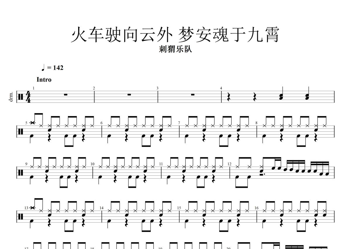 刺猬乐队《火车驶向云外,梦安魂于九霄》鼓谱 - 架子鼓谱
