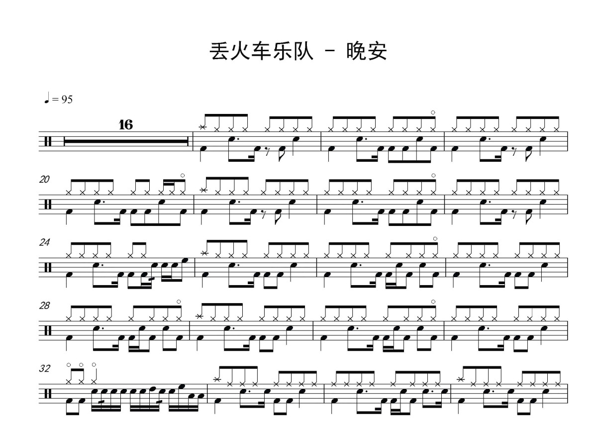 丢火车乐队《晚安》鼓谱 - 架子鼓谱