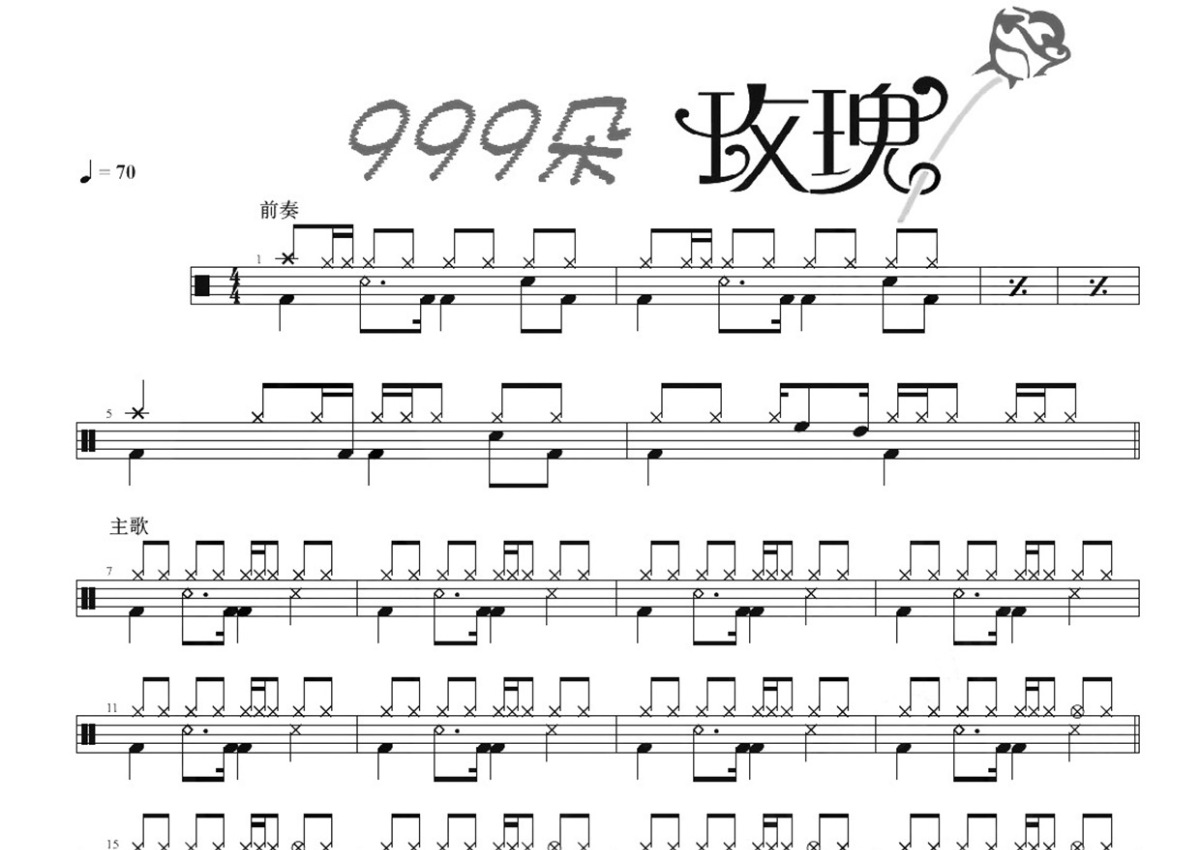 邰正宵《九百九十九朵玫瑰》鼓谱 - 架子鼓谱