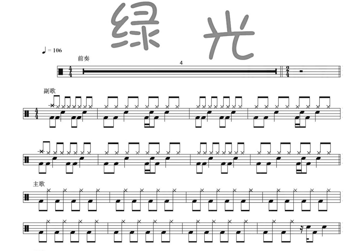 孙燕姿《绿光》鼓谱 - 架子鼓谱