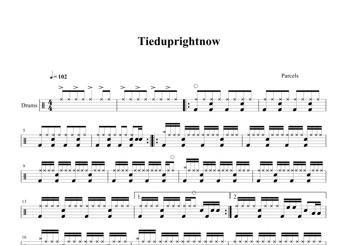 Parcels《Tieduprightnow》鼓谱 - 架子鼓谱