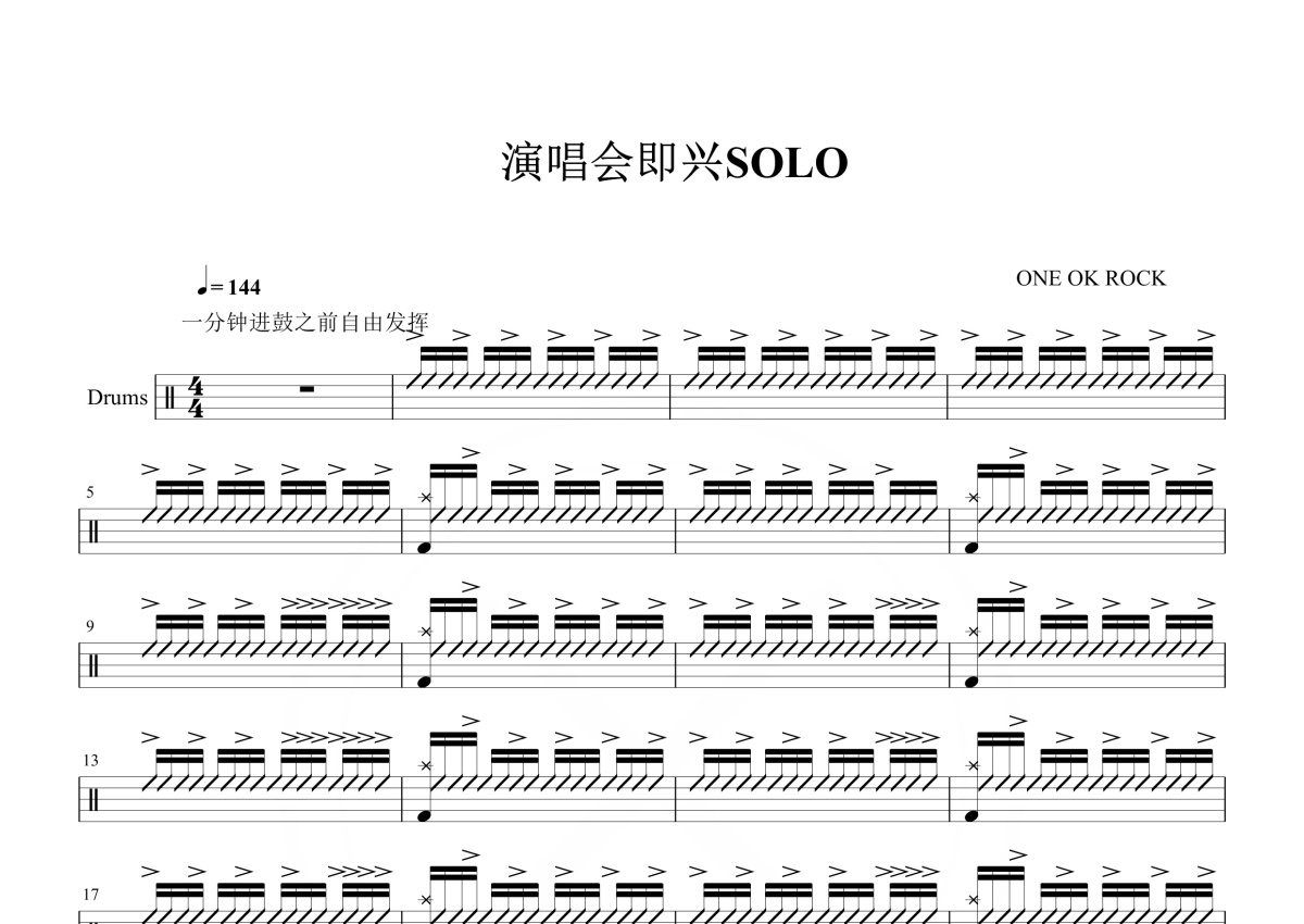 ONE OK ROCK《演唱会即兴SOLO》鼓谱 - 架子鼓谱