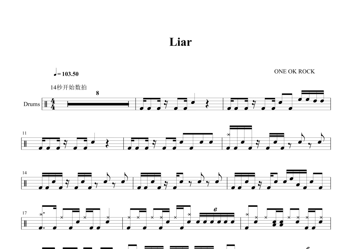 One Ok Rock《Liar》鼓谱 - 架子鼓谱