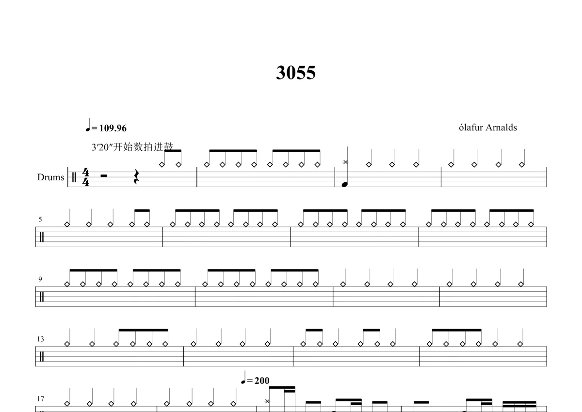 ólafur Arnalds《3055》鼓谱 - 架子鼓谱