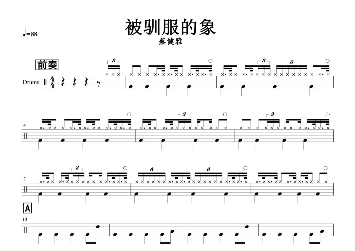 蔡健雅《被驯服的象》鼓谱 - 架子鼓谱