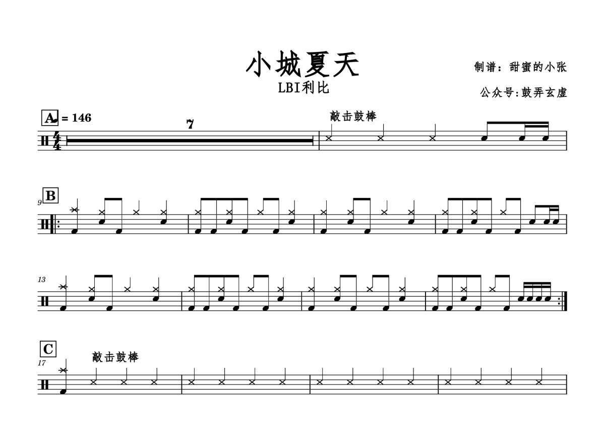 LBI利比《小城夏天》鼓谱 - 架子鼓谱