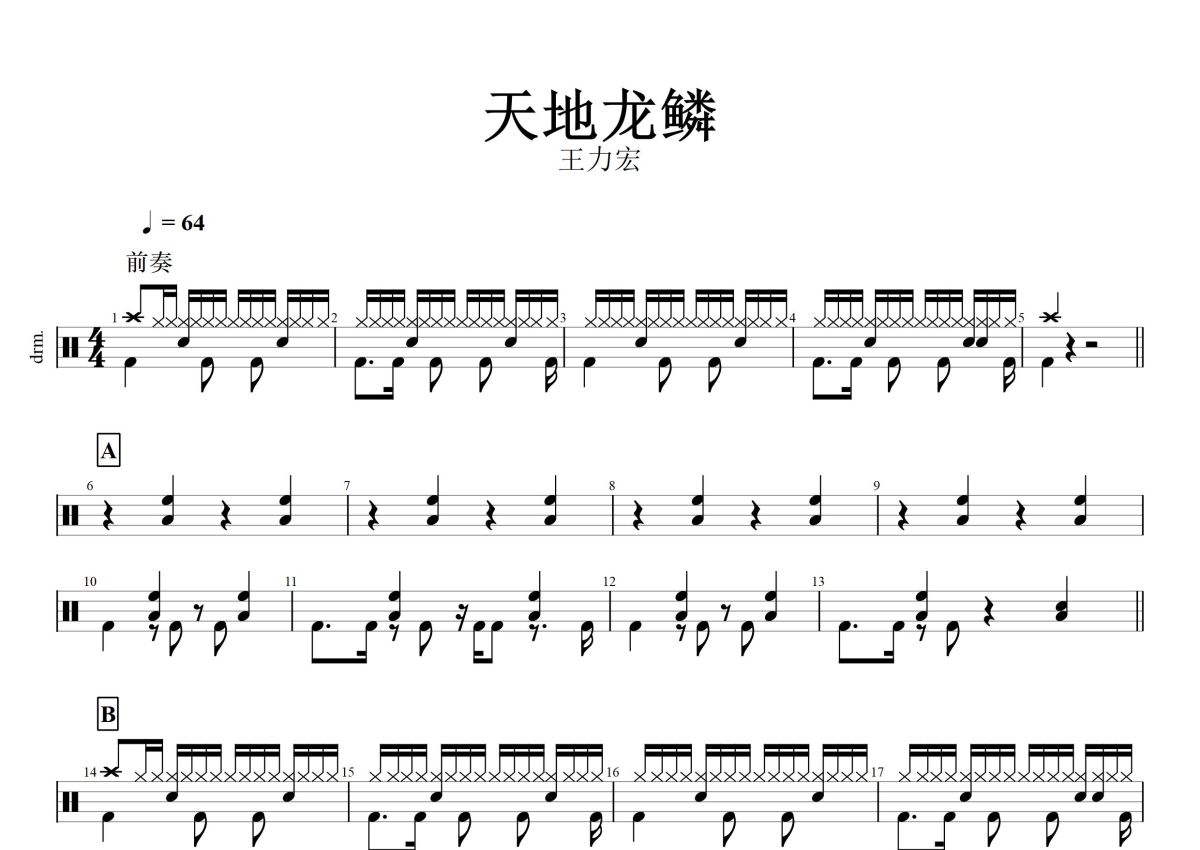 王力宏《天地龙鳞》鼓谱 - 架子鼓谱