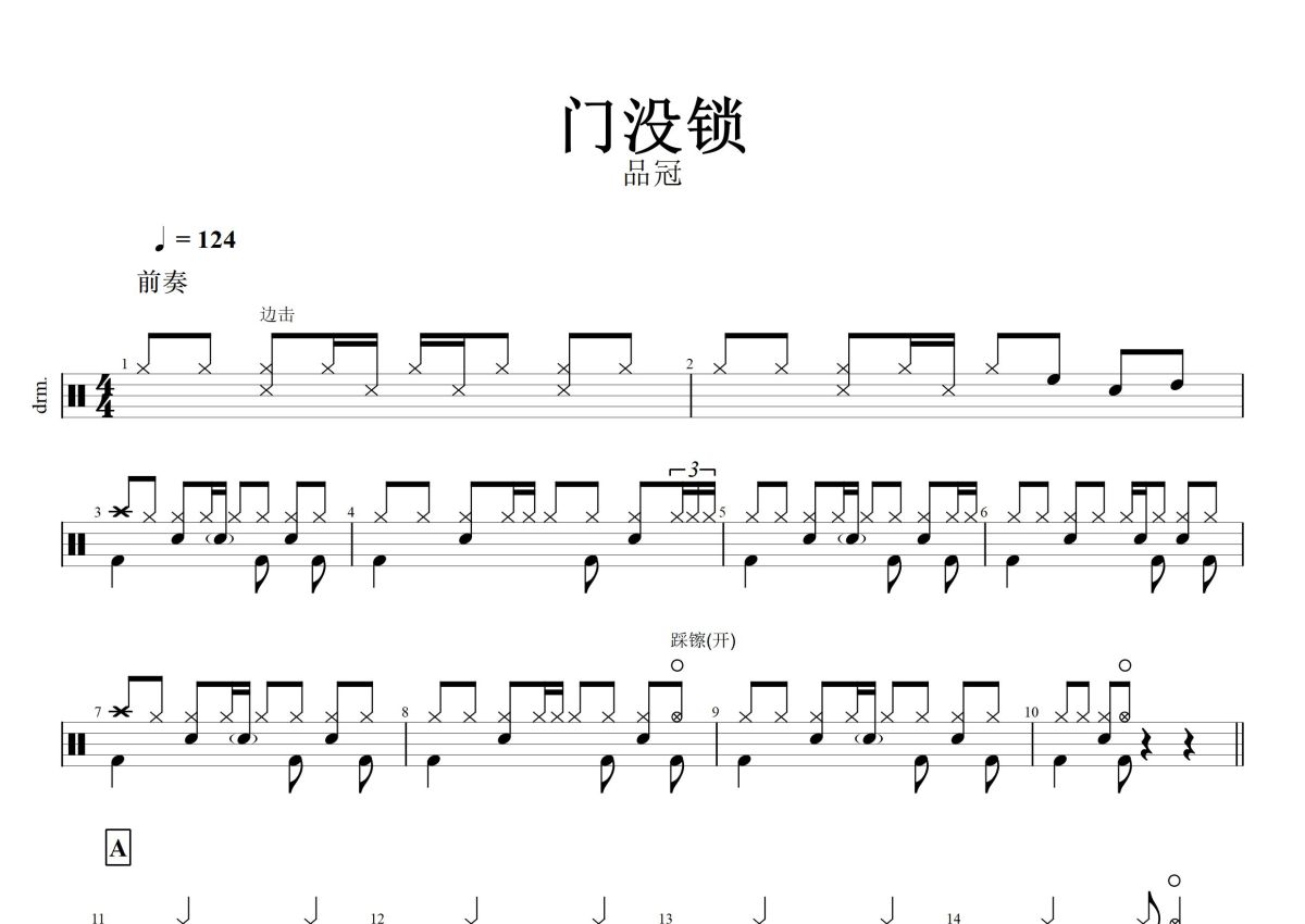 品冠《门没锁》鼓谱 - 架子鼓谱