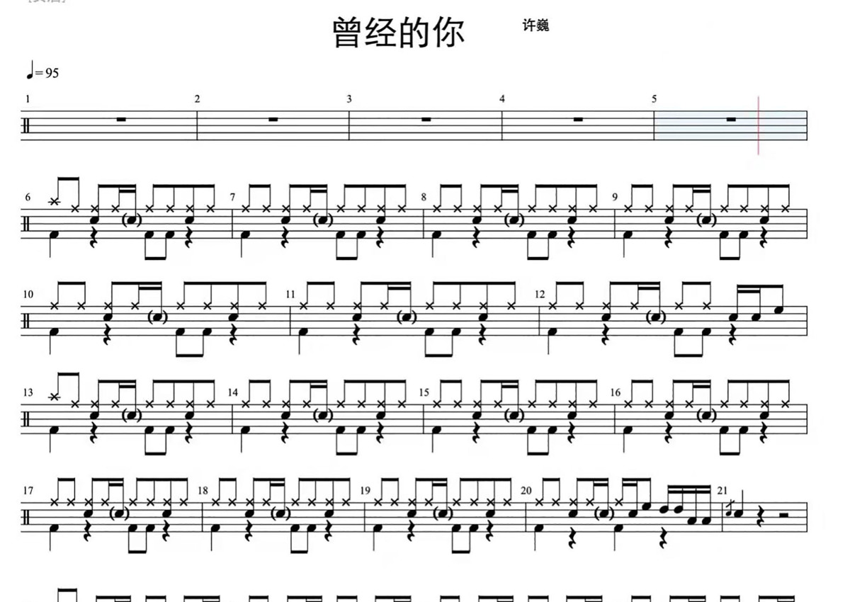 许巍《曾经的你》鼓谱 - 架子鼓谱